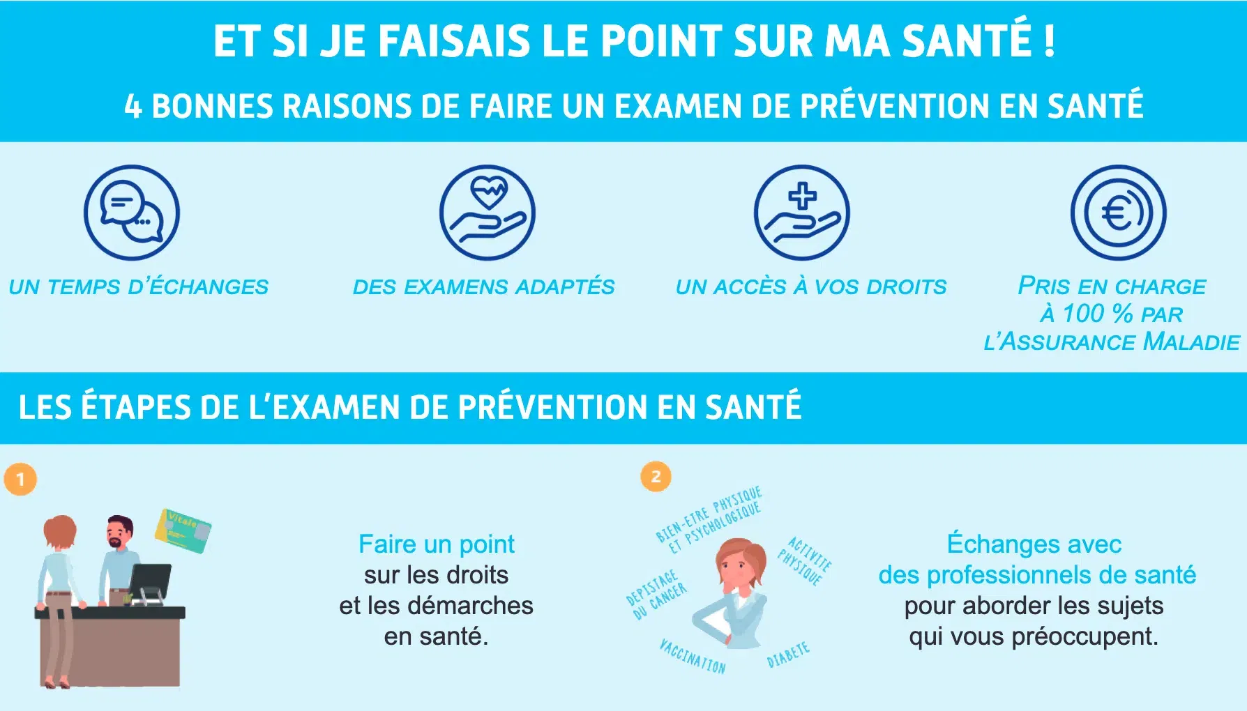 Pour plus d’informations : www.ameli.fr (rubrique « examen de prévention en santé »)