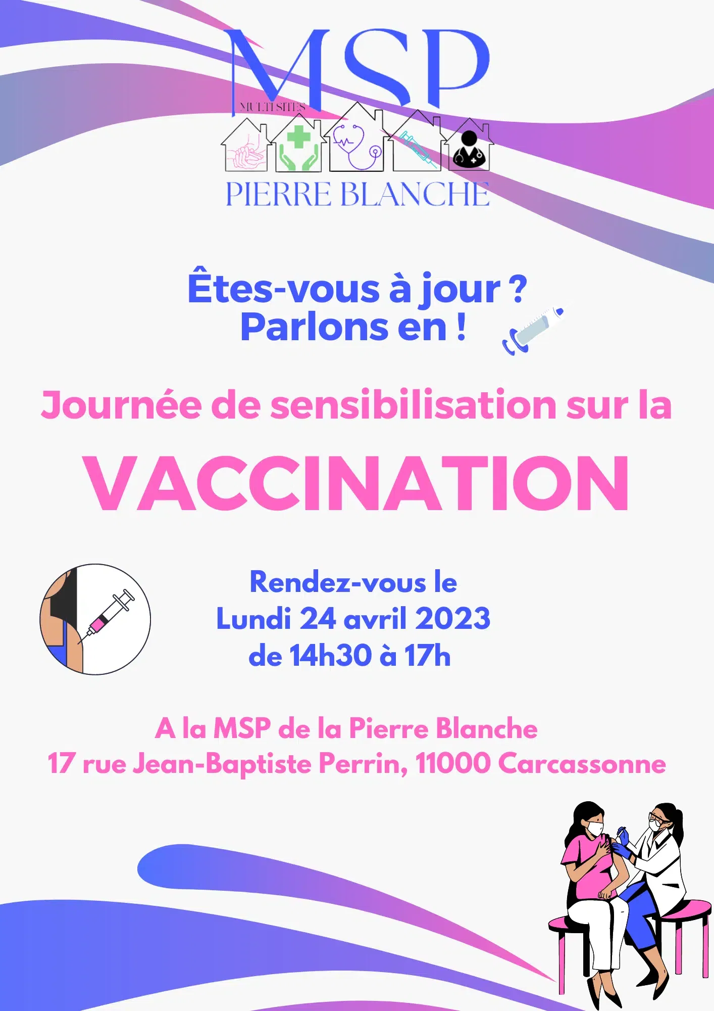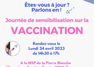 • Journée de sensibilisation sur la vaccination : Ce lundi 24 Avril, la MSP de la Pierre Blanche a également proposé un après-midi de sensibilisation sur la vaccination aux patients de son territoire.